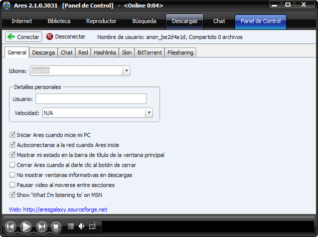 El mejor P2P para muchos, Ares es un cliente de intercambio de archivos, en el que podras buscar y encontrar todo tipo de archivos (MP3, Videos, Software, Documentos, Imagenes entre otros). Ademas posse búsqueda automática, integra un reproductor de audio y vídeo y te permite pausar y reanudar las descargas
