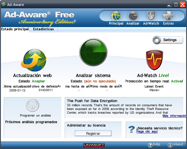 Ad-Aware Free Anniversary Edition 8.0.0, Protegete y limpia tu sistema contra espias y malware