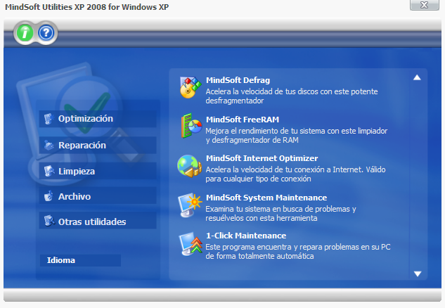 MindSoft Utilities XP 2008 v9.0.80.2008.70 Final, Protege, Repara y Optimiza el rendimiento de tu Xp con estas 19 herramientas