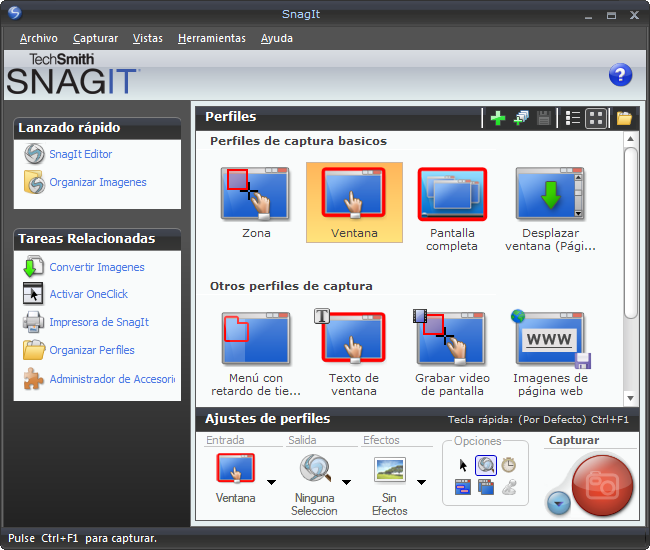 SnagIt es una utilidad, capaz de capturarlo todo, desde una simple imagen, un texto, una página web o incluso un vídeo. Podras capturar una zona fija, una ventana, una pantalla completa, una web completa, entre otras cosas. Además de todo eso podras añadirle efectos desde el comodo editor que posee, Mejorarle la nitidez , pasar a blanco y negro, agregar efecto a los bordes etc.