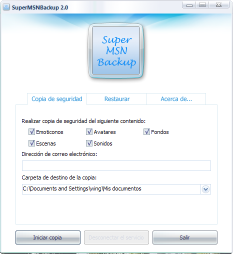 SuperMSNBackup v2.0.0.2 , Crea una copia de seguridad de tus avatares, sonidos, fondos y iconos de tu MSN