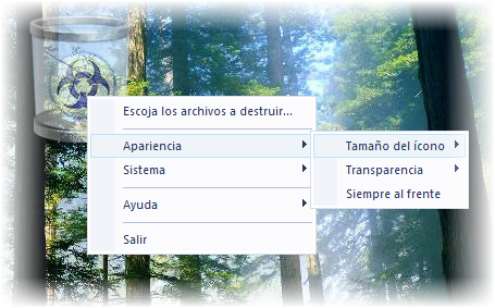 Freeraser es un eliminador de ficheros que toma el aspecto de una papelera transparente. Puedes posicionar su icono en cualquier punto del Escritorio, cambiar su tamaño o modificar la transparencia. Cuando arrastres ficheros o carpetas, se borrarán de inmediato usando uno de los tres algoritmos de borrado seguro incluidos.