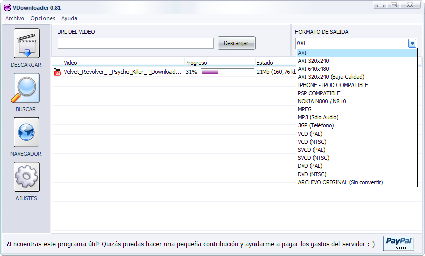VDownloader 0.81, Descargar y convierte cualquier video de una web de video