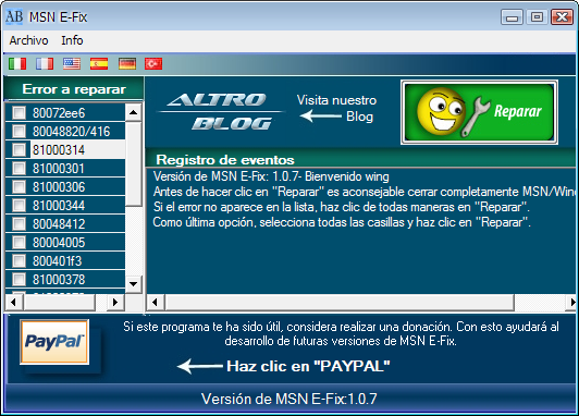 MSN E-Fix v1.0.7, Soluciona errores concretos de MSN Messenger