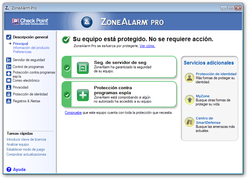 ZoneAlarm Pro combina el servidor de seguridad Nº 1 con la protección de identidad y software anti spyware para complementar su producto antivirus existente. Protege activamente contra los ataques entrantes, salientes y a los programas, al tiempo que le mantiene invisible para los piratas informáticos