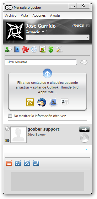 Goober Messenger v2.0, Cliente de mensajería multired con RSS, reproductor de música y mucho más