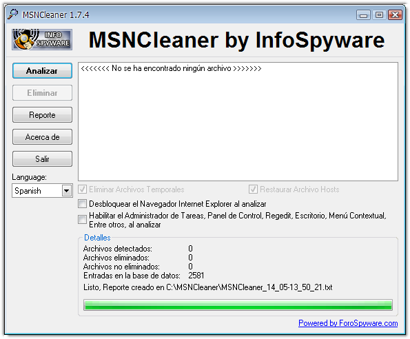 MSN Cleaner v1.7.5, Elimina cualquier Malware propagado por MSN y WLM
