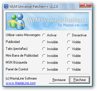WLM Universal Patcher++ es un pequeña utilidad que parchea Live Messenger para desactivar algunas características molestas, como la barra de pestañas o la publicidad.
